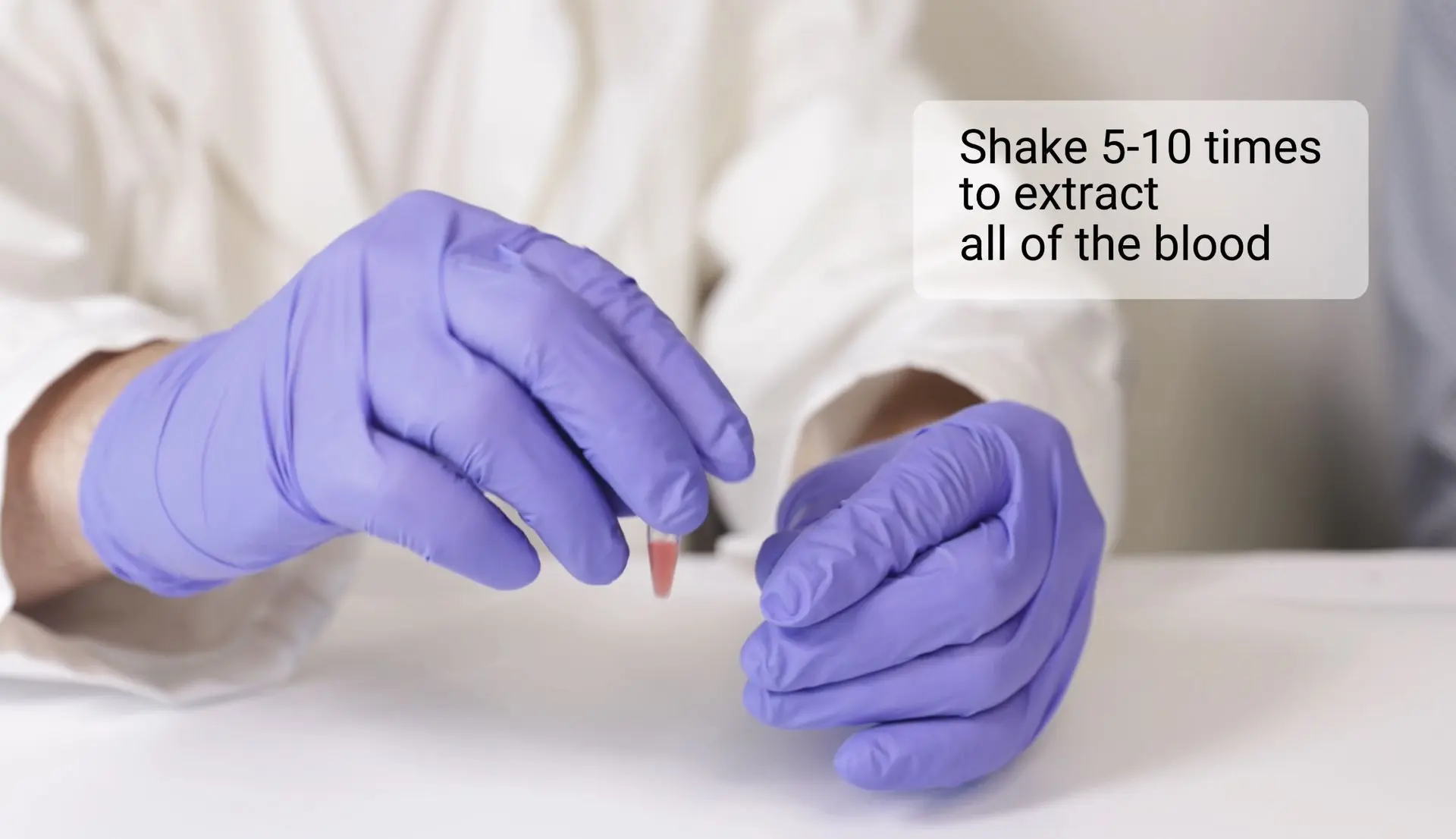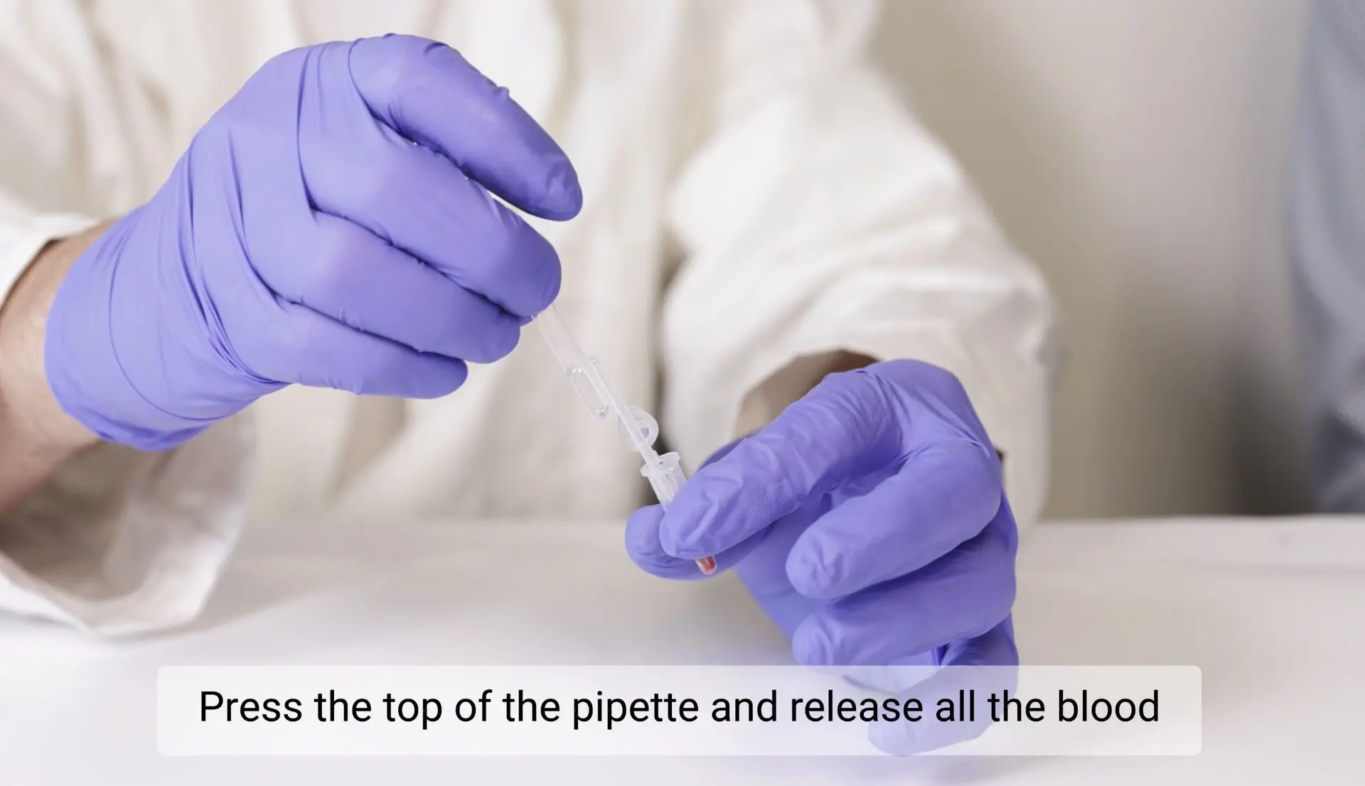Gently press only the top of the pipette to release the entire blood sample into the buffer tube for proper mixing.
