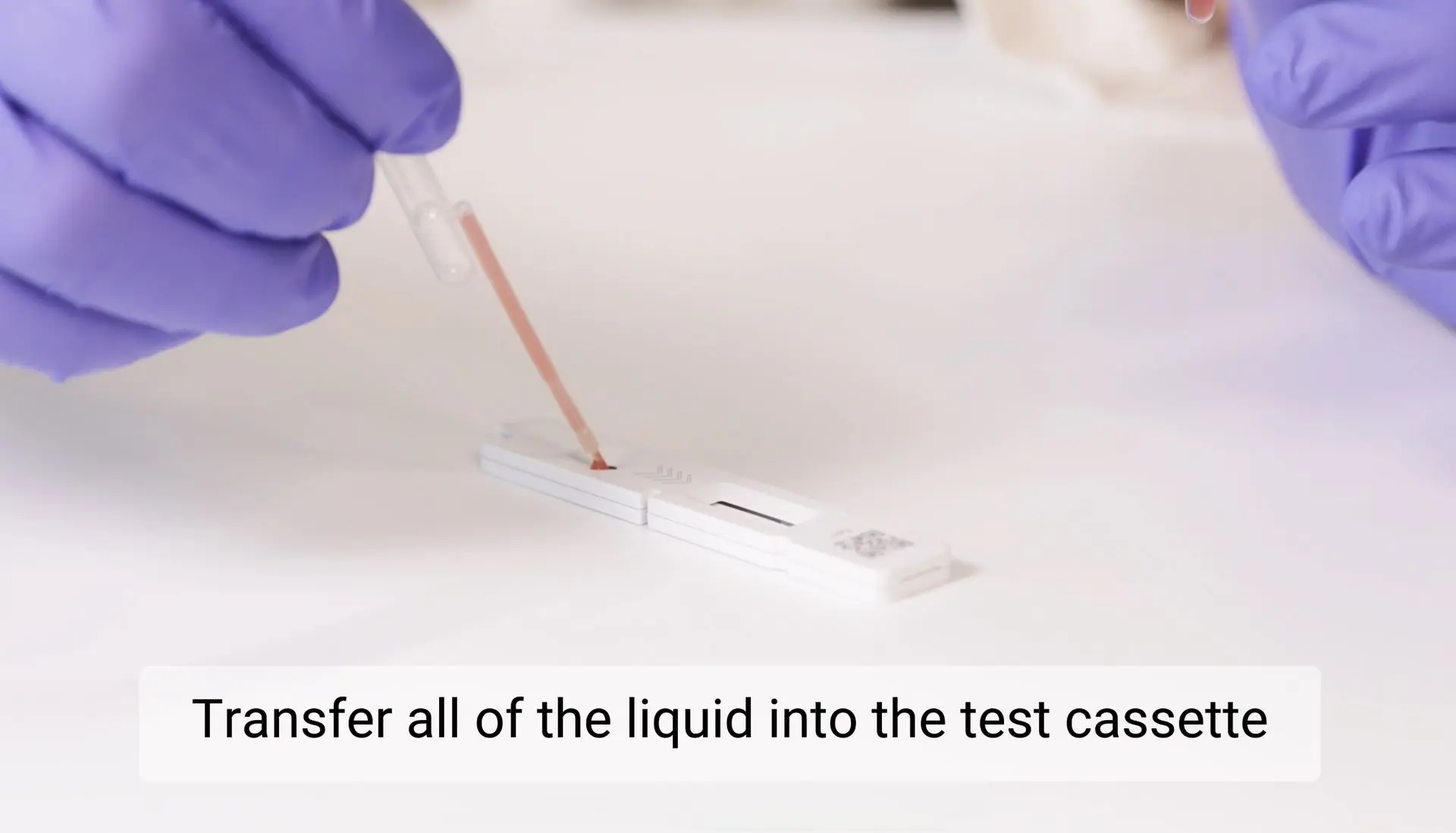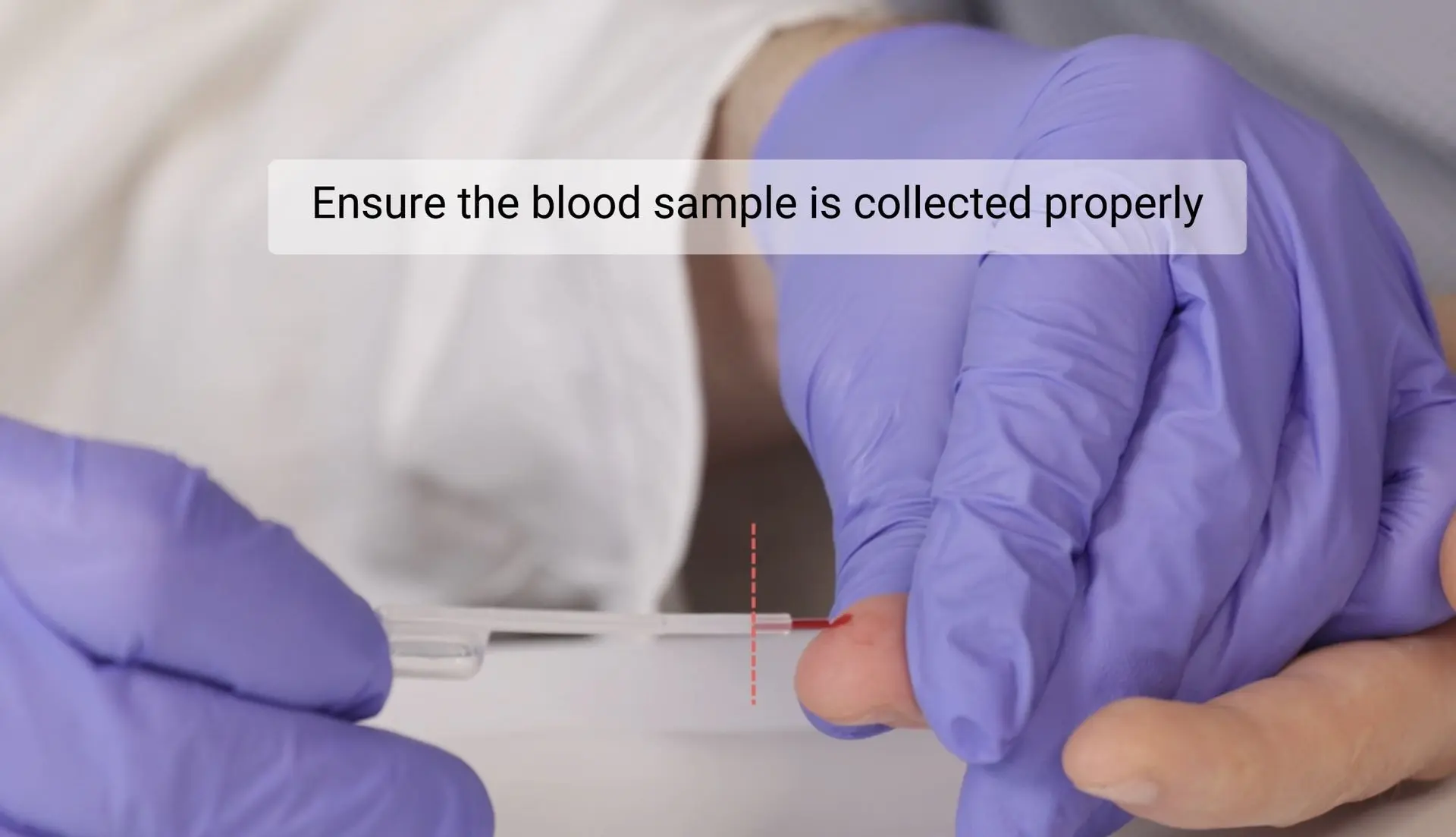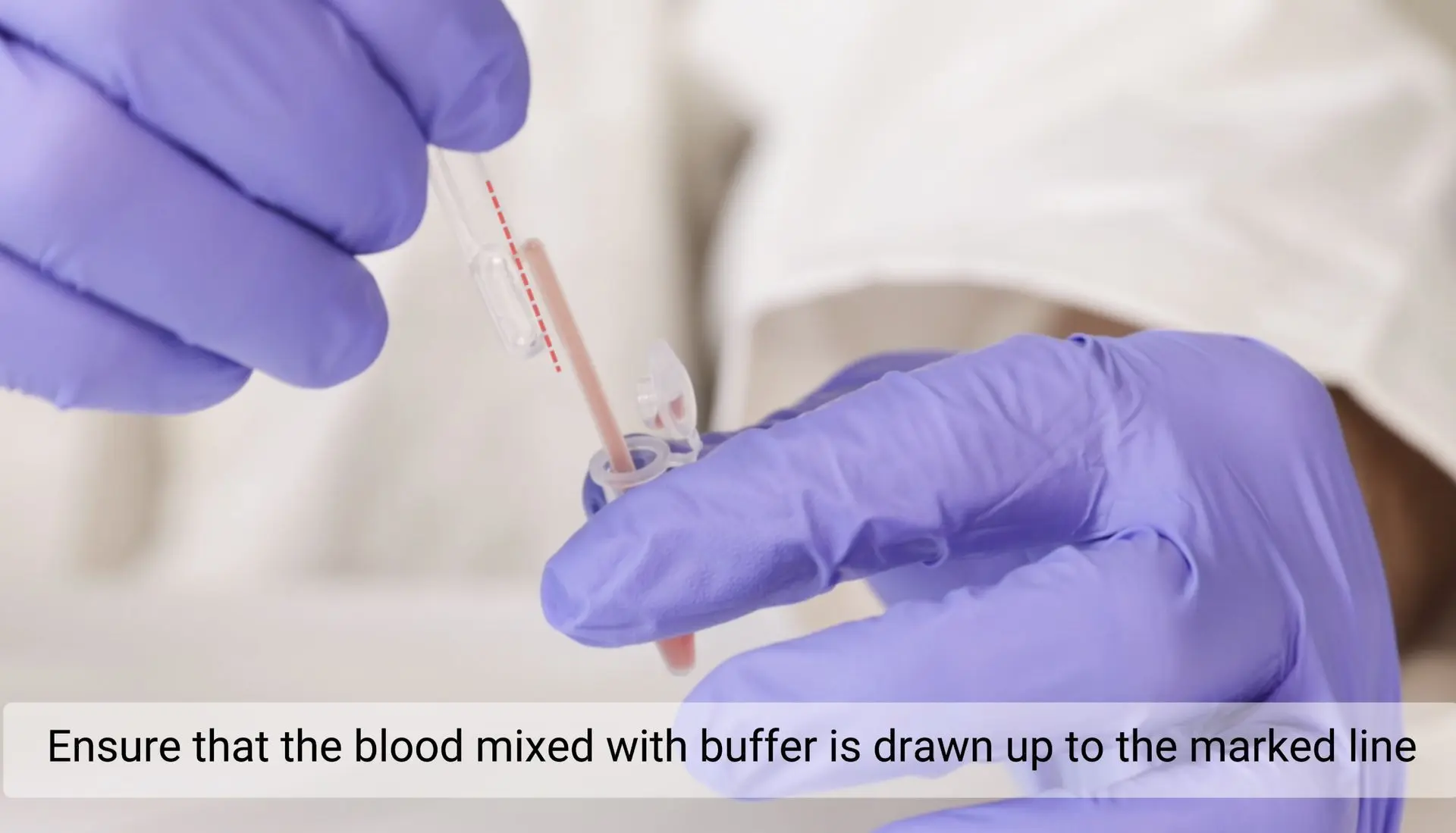 Gently press the top of the pipette to collect the mixed blood and buffer up to the indicated mark.