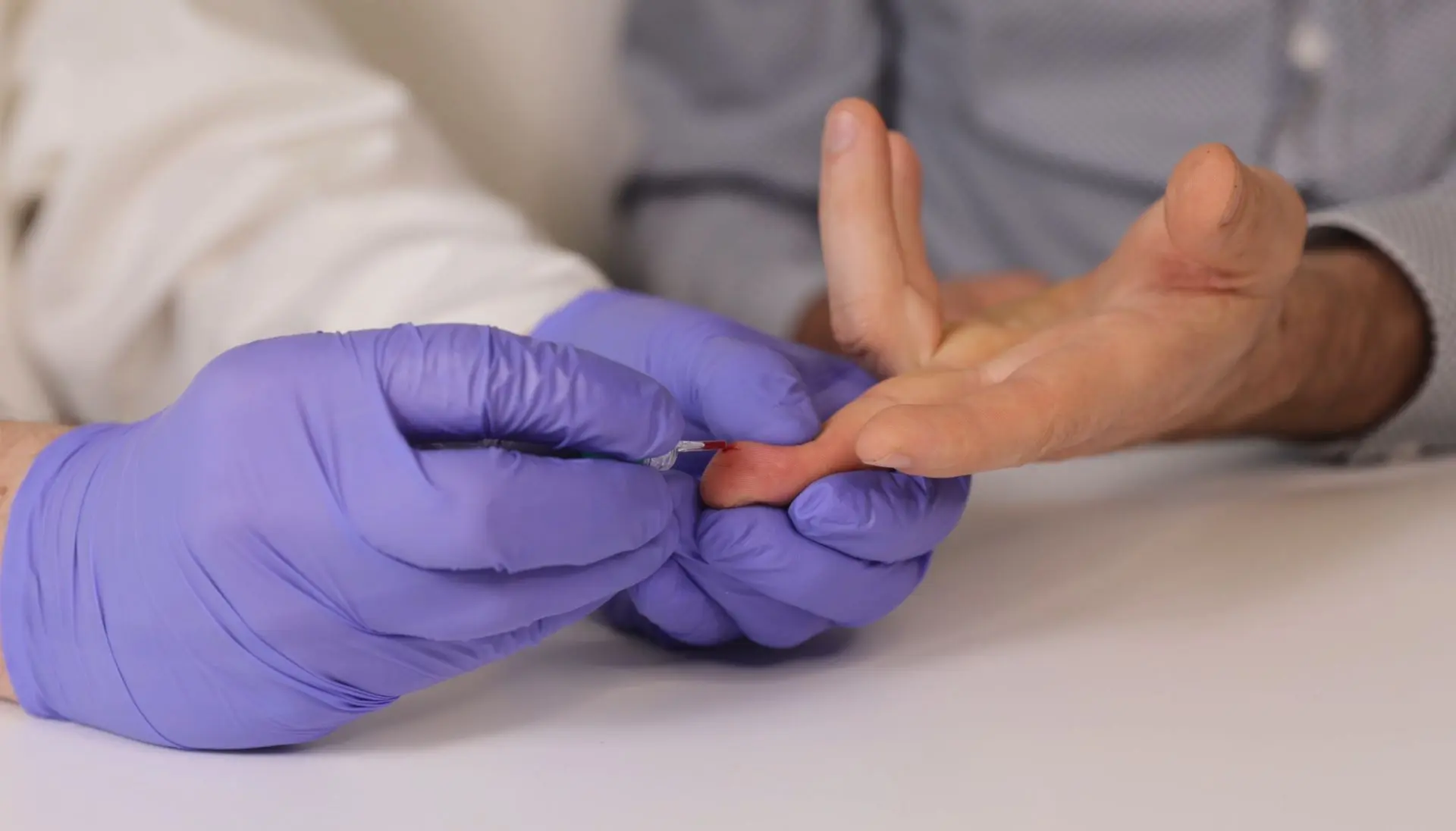 Wipe away the first drop of blood with a clean tissue or sterile gauze before collecting the sample. This ensures accuracy and prevents contamination.