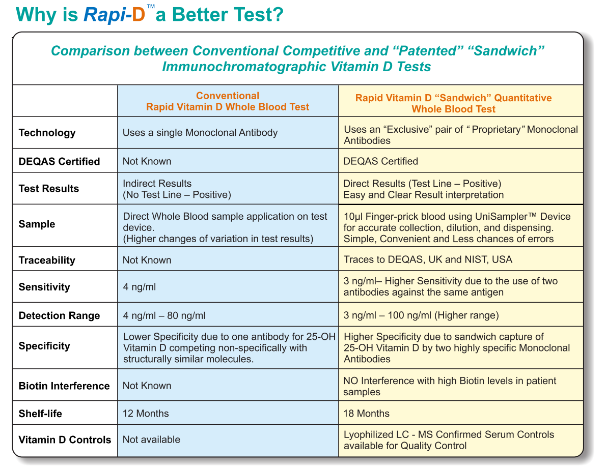 The Vitamin D Rapid Test Kit by Unimed provides a lab-grade quantitative diagnostic tool for the detection of 25-hydroxyvitamin D levels in human blood. Utilizing a simple finger-prick blood sample and a reader with ultra-fast analysis capabilities, this test offers rapid and reliable screening for both vitamin D2 and D3 deficiencies, contributing to better preventive care and clinical assessments.