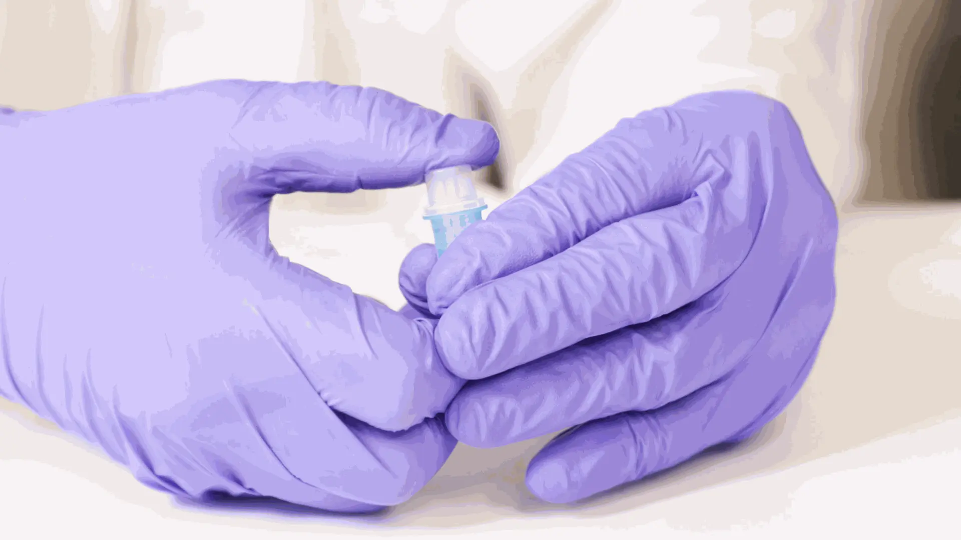 Use the sterile lancet to puncture the side of the fingertip. Gently massage the finger to form a blood drop.