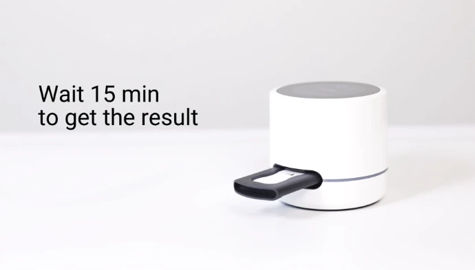 Sobald der LED-Ring grün leuchtet, schieben Sie die Testkassette vollständig ein, um die Messung zu starten.
