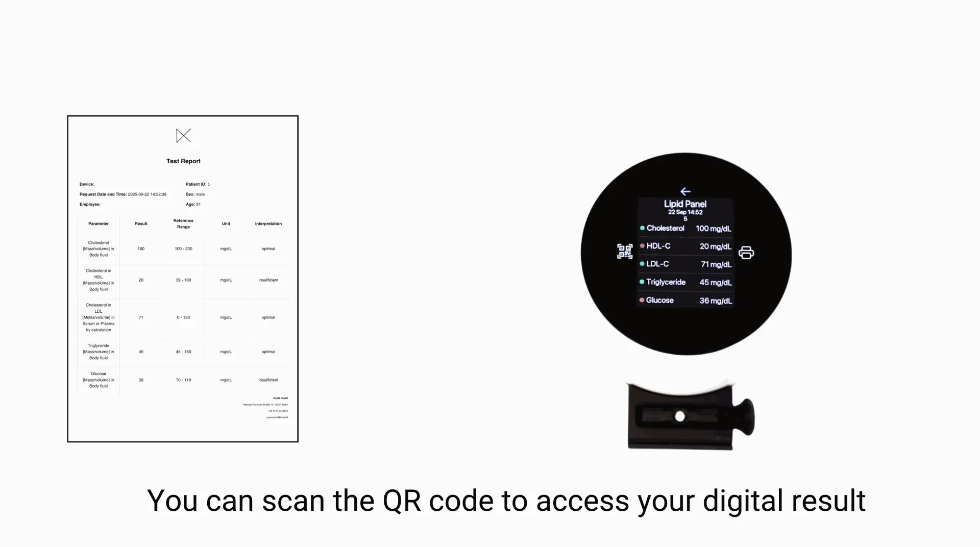Scan QR for quick results on your phone in PDF form